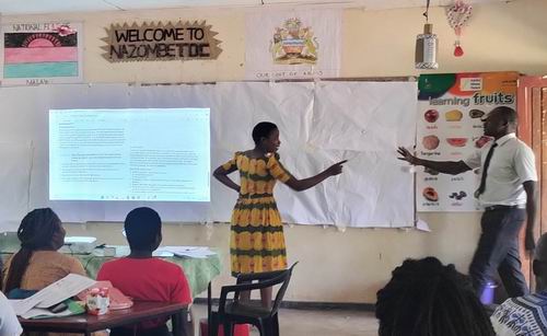 ■教員研修 実施前のベースライン調査、および校長、教員との合意形成のため、ライフスキル授業を観察し、生徒と教員からの聞き取りを行ないました。 各校5名ずつのライフスキル教員に教育区ごとに集合研修をします。2025年5月、ナゾンベ教育区で全10回の研修が完了しました。 研修は3時間で、前半に関係分野の県専門行政官が知識の講義、後半はナゾンベ教員開発センター助手の代理としてナゾンベ校副校長が、ライフスキル教科書で取り上げられている関連する学習活動を実施。パロンベ教員養成大学(TTC)講師が補足説明と総括を担当しました。累計出席率は98.7%。 |